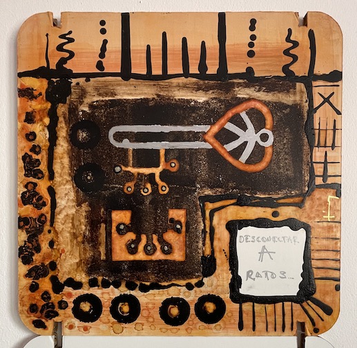 Petrolart es un proyecto artístico y vital que inicié en 1991, sin ser consciente de que me acompañaría más de 30 años después, sin saberlo con mis primeras esculturas empecé un viaje del arte circular cuando no estaba para nada de moda. Pinto con chapapote reciclado que recojo en las costas —esas galletas negras que el mar supura como si intentara expulsar su propia rabia. Transformo ese residuo tóxico en “oro líquido” para crear arte con un mensaje: concienciar sobre el cuidado del mar, del planeta y de nosotros mismos . En cuanto a soportes y en esculturas intento utilizar siempre que es posible materiales reciclados que encuentro en punto limpios, o en mis paseos en contenedores, como capós de coche, tapas de WC, tapas de cocina esmaltadas, o cualquier elemento que me inspiren. Siempre que puedo, también empleo pigmentos vegetales o naturales.